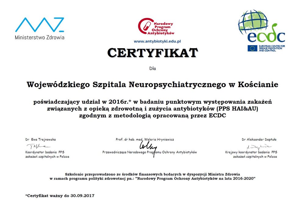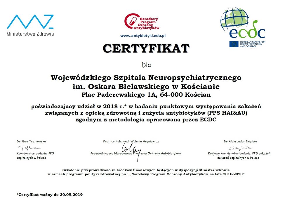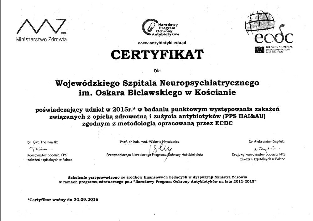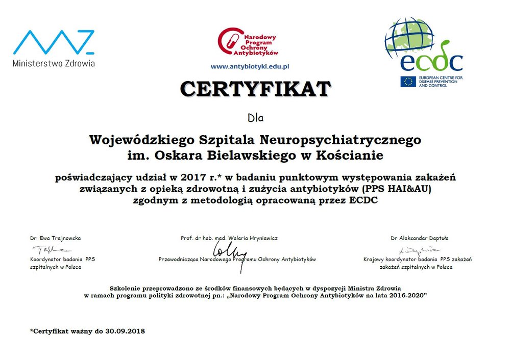 Wojewódzki Szpital Neuropsychiatryczny im. Oskara Bielawskiego w Kościanie bierze udział w Narodowym Programie Ochrony Antybiotyków.